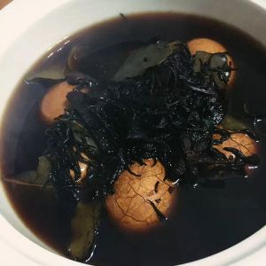 准备好茶叶、八角、桂皮、香叶、盐、糖、黄酒,鸡蛋备用