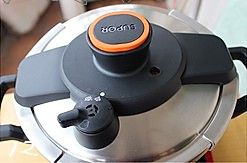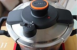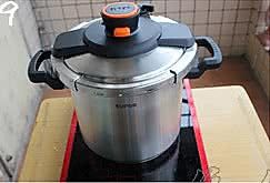 30分钟以后,关火,看盖子上的红色圆点浮在上面,表示锅里有压力,这个时候不能开盖,等待冷却;