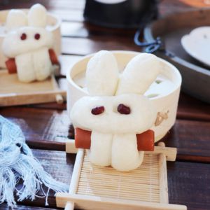 红豆点缀眼睛,兔耳朵压出纹路,全部做好二次发酵大约10分钟