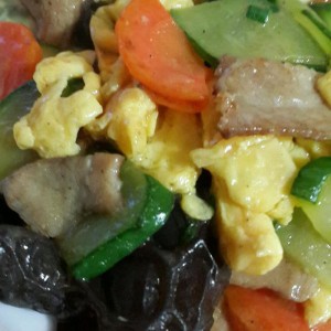 首先炒鸡蛋。这个时候把肉片抄下水。我实在不喜欢吃出肉腥味~所以一般肉食都是嫌先抄一遍水^^