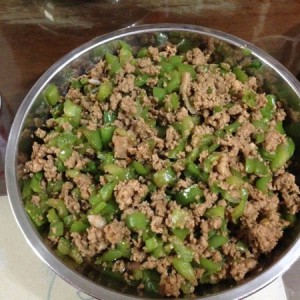 放入老抽和青椒丁 (汁想要多一点的话 和老抽一起放进去