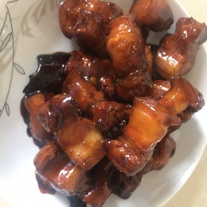 先炒糖色(放了糖色出来的颜色好看): 半勺油,一勺冰糖,全程小火熬,熬到有些发棕红色加开水(一定是热的水,小心迸溅)继续熬到稍微粘稠倒出备用。