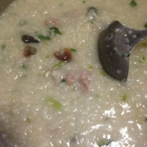 待粥快要粘稠时下皮蛋瘦肉熬10分钟,最后下葱花焖2分钟就可以享用啦^_^