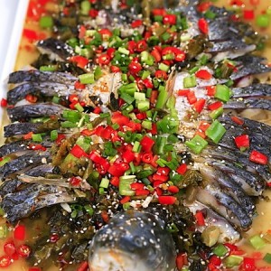 慢慢按原型装于盘中,撒上香葱、和剩余的小米椒圈。