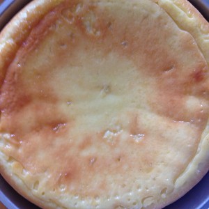 预热好了Y(^o^)Y。将蛋糕液倒入电饭煲里。记得要用手拿着抹布扶着。