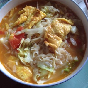 起锅放少许小葱,就一碗香喷喷的西红柿鸡蛋面做好了(吃的时候可以放辣椒酱,米醋,根据个人口味而定)
