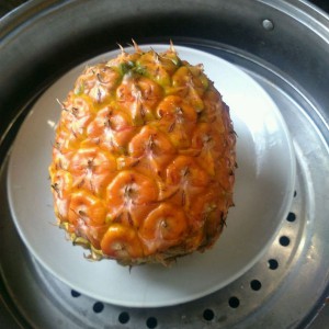 盖上菠萝,上锅蒸10分钟即可