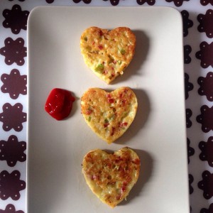 作为一名颜控,美食出品也不能随便。用心型煎蛋器造型,满满的。 用橄榄油煎饼比较健康哦