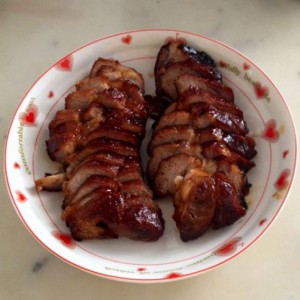 第二天取出,用叉子叉好,刷上浸泡的调料,放入预热好的烤箱,150度,40分钟,期间之前两次酱,看到肉表面干燥了便刷,剩十分钟时刷上蜂蜜