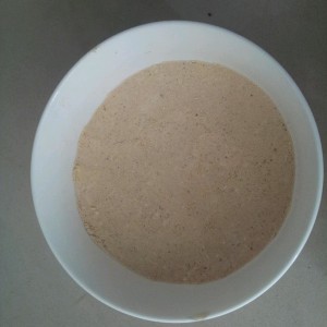 把面粉放进炒锅(干的),不停翻炒至淡黄色。