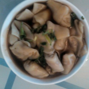 在碗放点酱油和香菜,把馄饨煮熟打入碗里就行了,喜欢吃香油的可以放几滴!