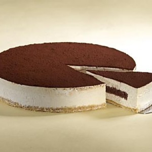 把蛋糕模放进冰箱冷冻3小时左右,芝士糊彻底凝固以后,脱模(用吹风机稍稍在蛋糕模外壁吹一下即可轻松脱模),在表面撒上可可粉和糖粉做装饰