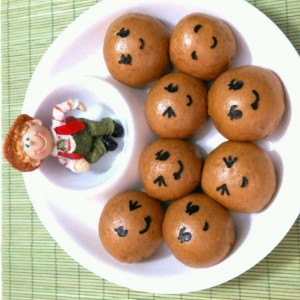 馒头蒸好后趁热将表情粘上,如果粘不牢可以稍粘点水,这样,可爱的表情馒头就做好了。