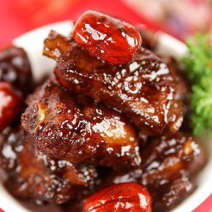 肋排1斤半、红糖30克、大枣10枚、醋4汤匙、八角2枚、姜片、葱段、广东米酒、老抽、盐、香油适量。