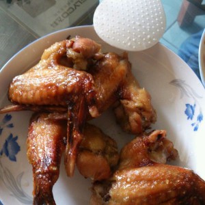 把涂好蜂蜜的鸡翅放进微波炉里,用中高火转10分钟,再转用中火转10分钟