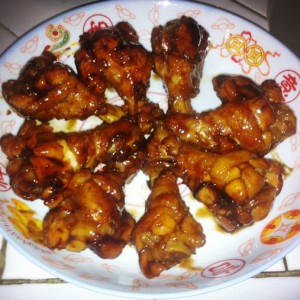 腌制好后,先用油煎鸡翅,双面金黄时,下葱姜蒜八角爆炒。