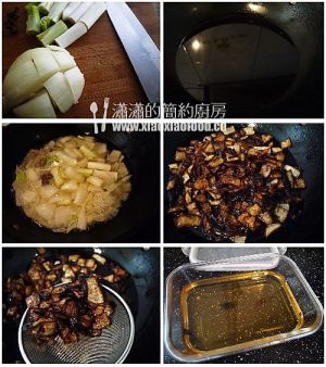 将洋葱、大葱以及其他调料用漏勺捞去,待油凉后用密封容器盛装,放冰箱冷藏保存,随吃随用。