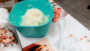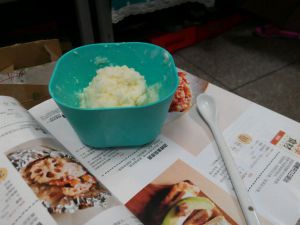 煮熟后放碗里压成泥,稍微凉后,拌上酸奶。