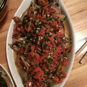 烧热锅,放油烧热,放姜片,把鱼炸成两边金黄色,把鱼呈出来,再把辣椒炒出辣椒油放入盐,把鱼再次放入锅里,到入水,(和鱼背平行,让鱼更容易熟,更入味),等鱼收汁,把鱼摆盘,再把葱放入锅中,和辣椒翻炒两下,再把辣椒等配料倒在鱼上面,一道美味的红烧鲫鱼就做好了。
