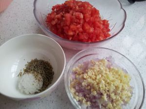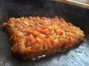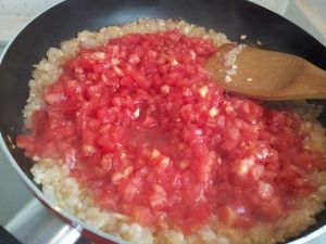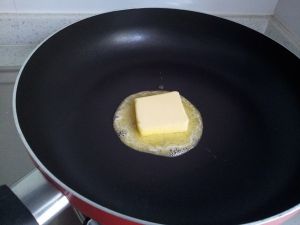 锅热后 放入黄油 融化后 放入大蒜 洋葱 翻炒1分钟 洋葱炒出香味后 放入西红柿丁