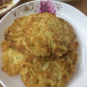 锅里放油,中小火,一勺一煎一个,煎至金黄色既可。这就是我的成品