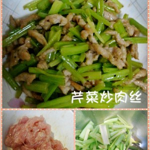 蒜切片。锅中放油,放几粒花椒爆香,捡出花椒。放蒜片,炒香,放肉丝滑散,炒匀。炒至肉丝变色,加芹菜爆炒两分钟,出锅。