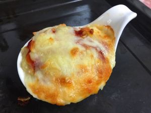 烤箱预热5分钟120度 烤到芝士颜色变黄即可