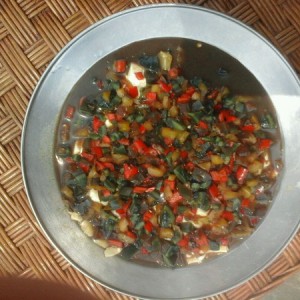 把皮蛋 青椒红椒 榨菜剁碎倒入生抽加入鸡精