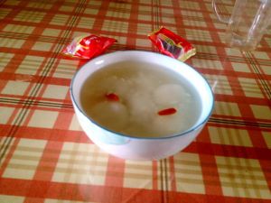锅中水开后放入锅内,慢慢搅拌几下,待元宵飘起,就可以出锅了。