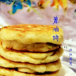 面团擀成大饼,把油盐液刷匀,撒上葱花。