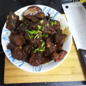 油烧至6、7成热把葱姜蒜爆一下放入排骨,炒至排骨变黄加入八角 加酱油再翻炒几下兑热水漫过排骨即可 煮开后放入十三香 糖 最后再放盐 大火收汁