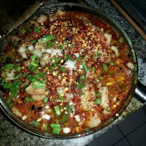 锅中放油辣郫县豆瓣葱姜蒜炒出红油,加入清水,高汤更好。烧开后放入肉片,煮熟