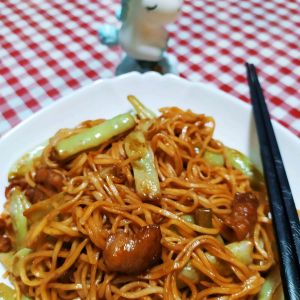 看汤汁快没有时,改小火,用筷子将面条挑散、拌匀。