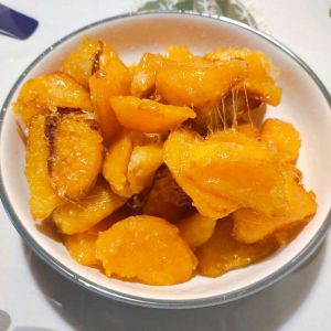 炒糖,最主要的是糖与水的比例2:1,炒啊炒到金黄色倒入地瓜翻炒两下出锅即可