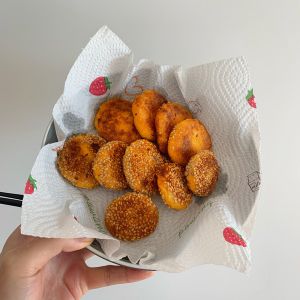 锅中少许油,将芝麻南瓜饼放入锅中,两面金黄就可以了