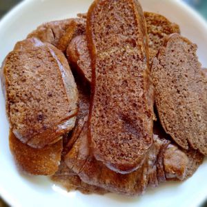 先将馒头切片,尽量切薄点,这样可以节省煎的时间,又节约用电