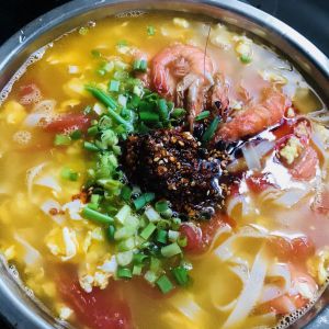 煮好放葱,按个人口味放辣椒油。好吃又营养