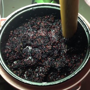桑葚放入电饭锅中用擀面杖捣碎并加热