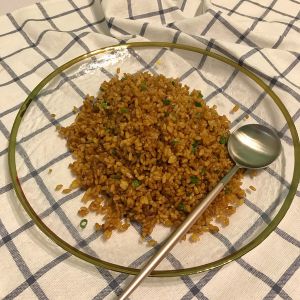 最后加入葱花装盘。酱油炒饭,隔壁小孩都馋哭了…