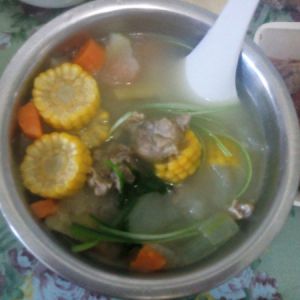 焯排骨的水倒掉。。煮一锅新水,把排骨放入。姜,胡萝卜,玉米段一起放入锅子中。