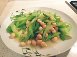 用同只锅,无需再加油,将芹菜放入,均匀翻炒至熟,放入炒好的夏威夷果,按自己口味加盐巴和鸡粉调味,再加少量糖提鲜,最后用淀粉勾个薄芡!