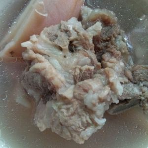 这是成品图 超好吃的连藕绿豆排骨汤就做好了 图片中的莲藕是我们电白地区产的 很粉糯 最适合拿来煲汤