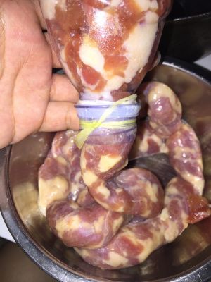 把它们拌匀后放冰箱冷藏几个小时,因为赶时间,我只冷藏两个小时就开始灌肠了