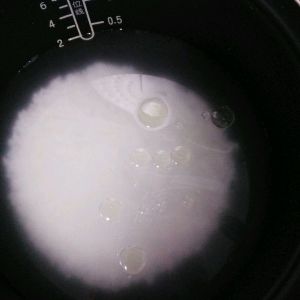 煮好的粥中加入姜片。