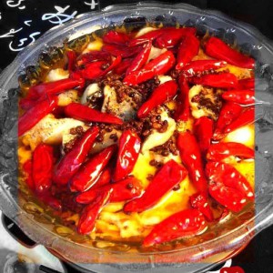 将那半碗捞出的花椒,辣椒和油,加热,淋上。