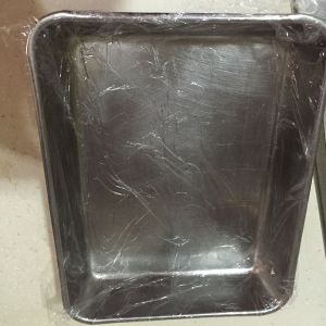 保鲜纸放方盘里,在保鲜纸上刷一点熟花生油