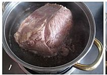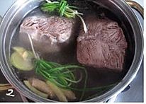 牛腩洗净后,放入锅中加净水中火煮沸后,取出牛腩用净水清洗下。(带有牛腩沫的水倒掉)
