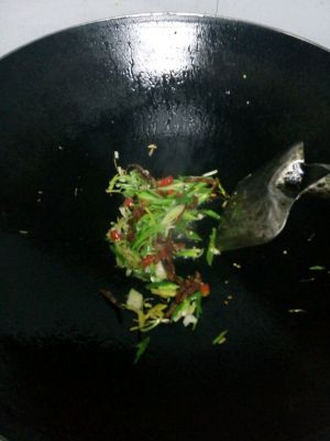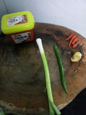 锅内放点油把蒜爆香,再把辣椒什么放下去一起炒,放甜辣酱,盐,生抽,一点鸡精