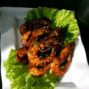 生抽,香醋,料酒,白糖,盐,调和成汁。 锅内热油下入大虾煸炒卷曲变红,倒入调味汁,翻炒均匀盖上锅盖,焖至收汁。