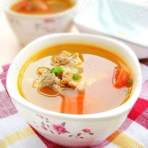 最后放盐调味,可撒少许葱花,西红柿排骨汤里有葱花,很搭的。